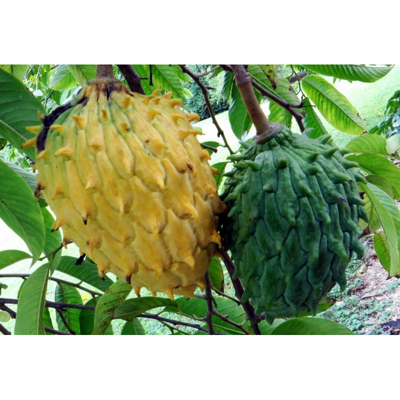 Propagation is usually by seeds, which can remain viable for 2 years kept dry and in the dark, though air-layering and grafting are possible to preserve specific cultivars.[4] Grafting onto rootstocks of Annona montana or Annona glabra causes dwarfing. Little work establishing superior cultivars has been done and considerable genetic variability exists. ‘Regnard’ is perhaps the best known cultivar, which was introduced into the Philippines in 1917. The largest is 'biriba do Alto Solimoes', developed in Brazil, which can weigh up to 4 kg, making it probably the third largest fruit of the Annona family after the junglesop and the soursop.