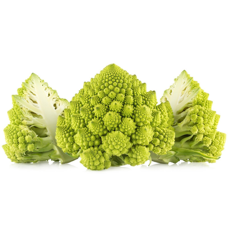 Romanesco blomkålar är en fantastisk variation från Italien och producerar fantastiska gulgröna huvuden av spiralrosetter med en utmärkt smak visuellt som liknar en kotte. Många romanska blomkålar mognar på våren men denna sällsynta som kommer klar under hösten (okt-nov) och därmed undviker behovet av att övervintra den.